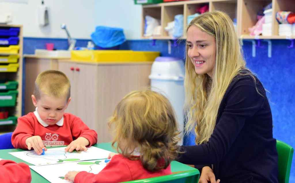 Durante varias semanas pasarán por las distintas aulas: Aula 1 año, Aula Bebés o Aula de 2 años. Durante las jornadas que estén en el Centro irán rotando por diversas actividades: grupo coloquial con bits, cuentos, canciones, poesías, praxias, láminas motivadoras o audición. También trabajarán con los niños la creatividad por medio de las fichas (se puede ver en el vídeo). Les acompañarán durante la jornada en su momento de merienda y recreo y en las actividades de programa neuromotor. Estarán junto a las tutoras en las clases de matemáticas en las que los niños trabajan los conceptos lógico matemáticos para ir desarrollando sus capacidades y que el aprendizaje en Educación Infantil sea más fluido. Nuestras alumnas también participan de las clases de Inglés con profesoras nativas que se imparten en Kid´s Garden. Estas clases son eminentemente interactivas, los niños participan y dialogan con la profesora adquiriendo los sonidos y la capacidad de expresar los fonemas correctamente en esta lengua.