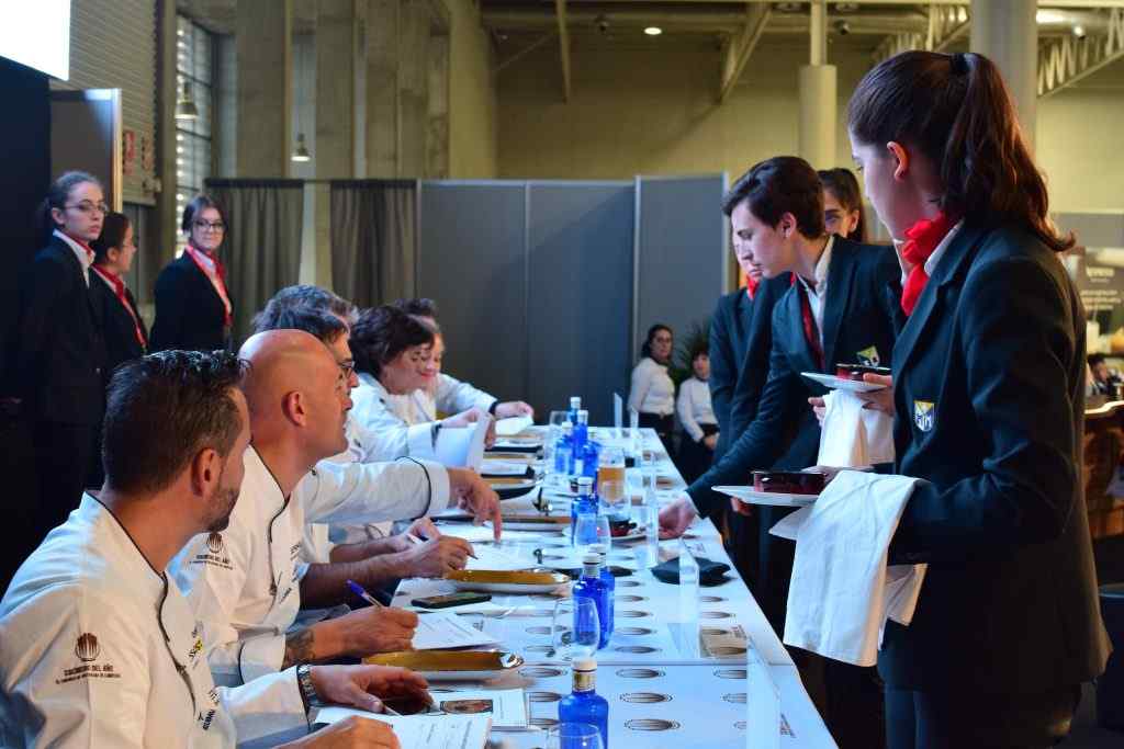 Los alumnos de 2º de Cocina y Gastronomía realizaron el pase de platos al jurado y dos de ellas hicieron el servicio de sala en el Concurso Camarero del año. Fue una experiencia profesional enriquecedora y tuvieron la oportunidad de conocer a prestigiosos chefs que formaban parte del jurado, como Miguel Ángel de la Cruz, buen amigo de la Escuela o Rafa Morales.