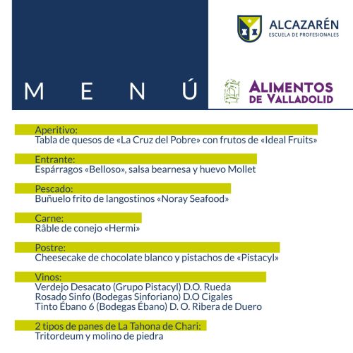 Los alumnos de 1º del Grado Medio de Cocina y Gastronomía y 1º del Grado Superior de Dirección de Cocina, han elaborado un especial a partir de productos de la marca Alimentos de Valladolid.