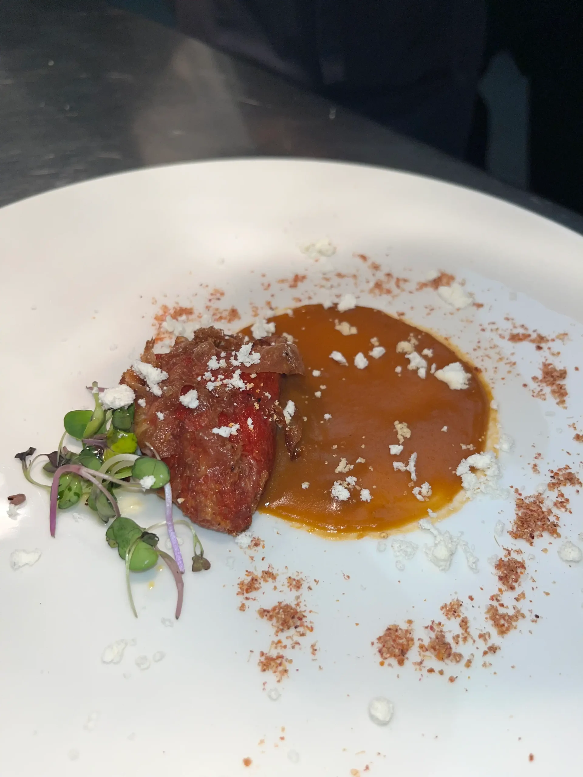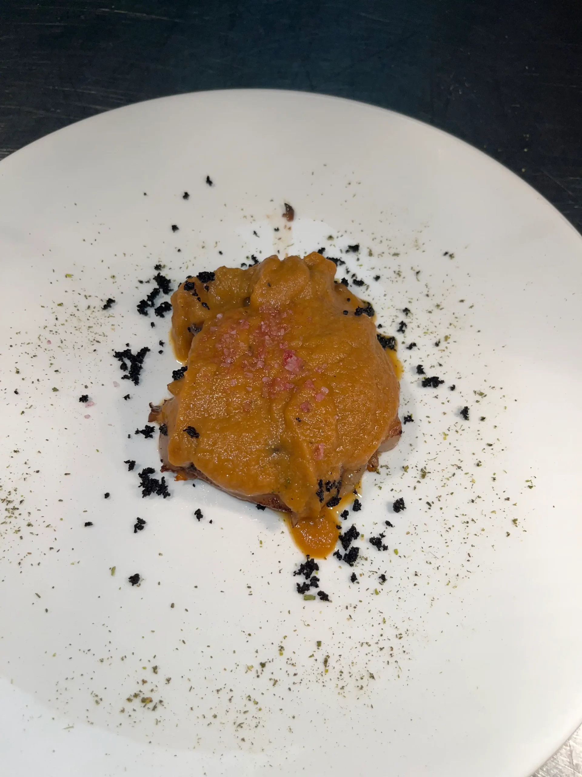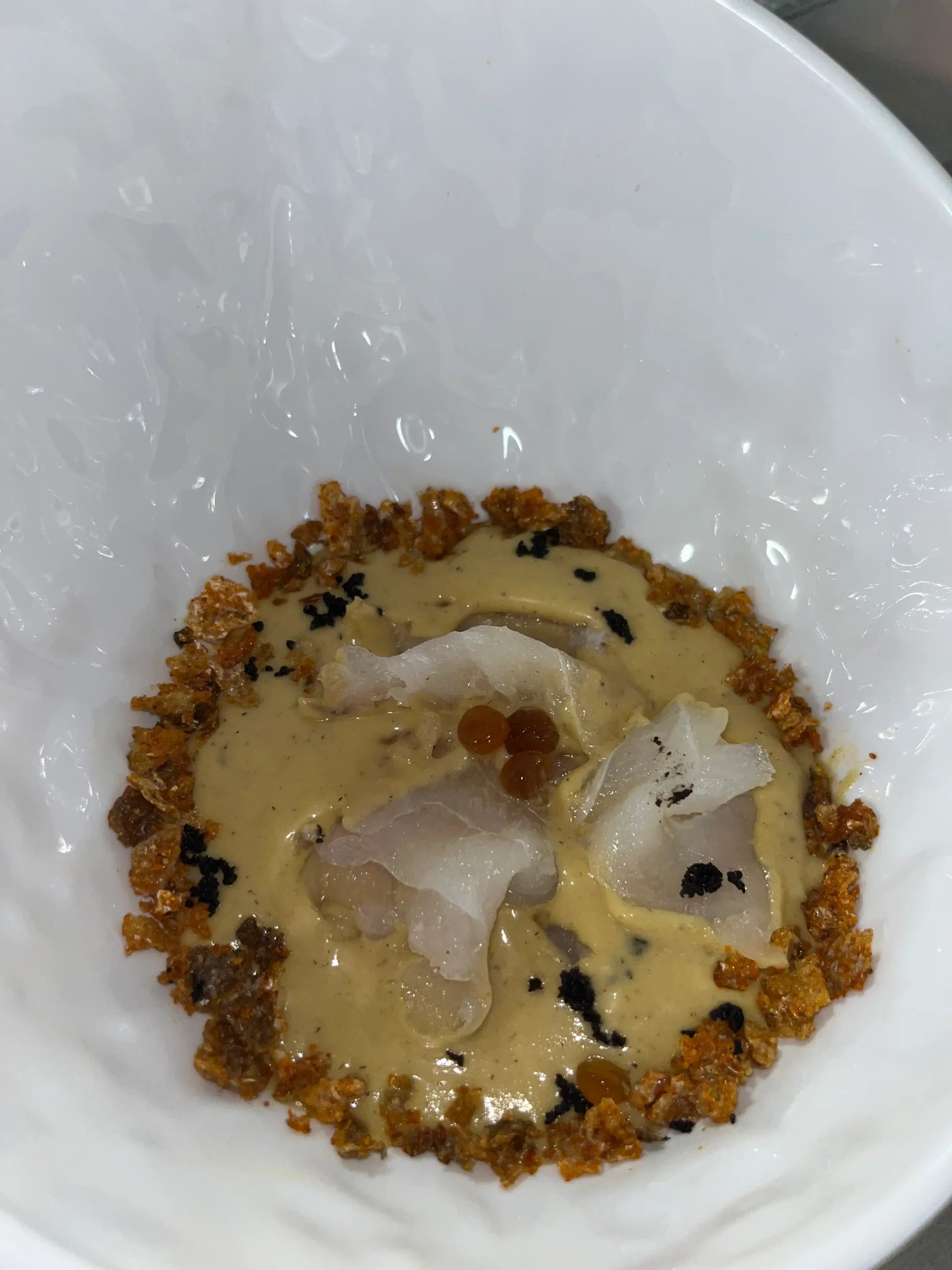 - Bacalao ahumado sobre crema de puerro asado.