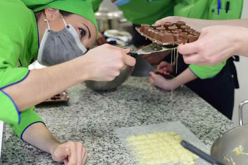 Uno de los trabajos que estaban desarrollando nuestros alumnos de Dirección de Cocina era el atemperado de chocolate para la elaboración de los bombones caseros del menú de San Valentín Take Away.