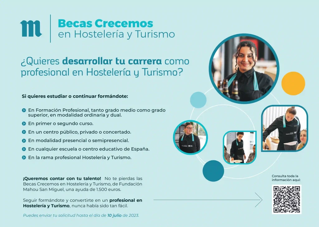 ¿Te gustaría desarrollarte en el sector de la Hostelería y Turismo? Ya está abierto el plazo para pedir la Beca Crecemos en Hostelería y Turismo, organizada por la fundación Mahou San Miguel.