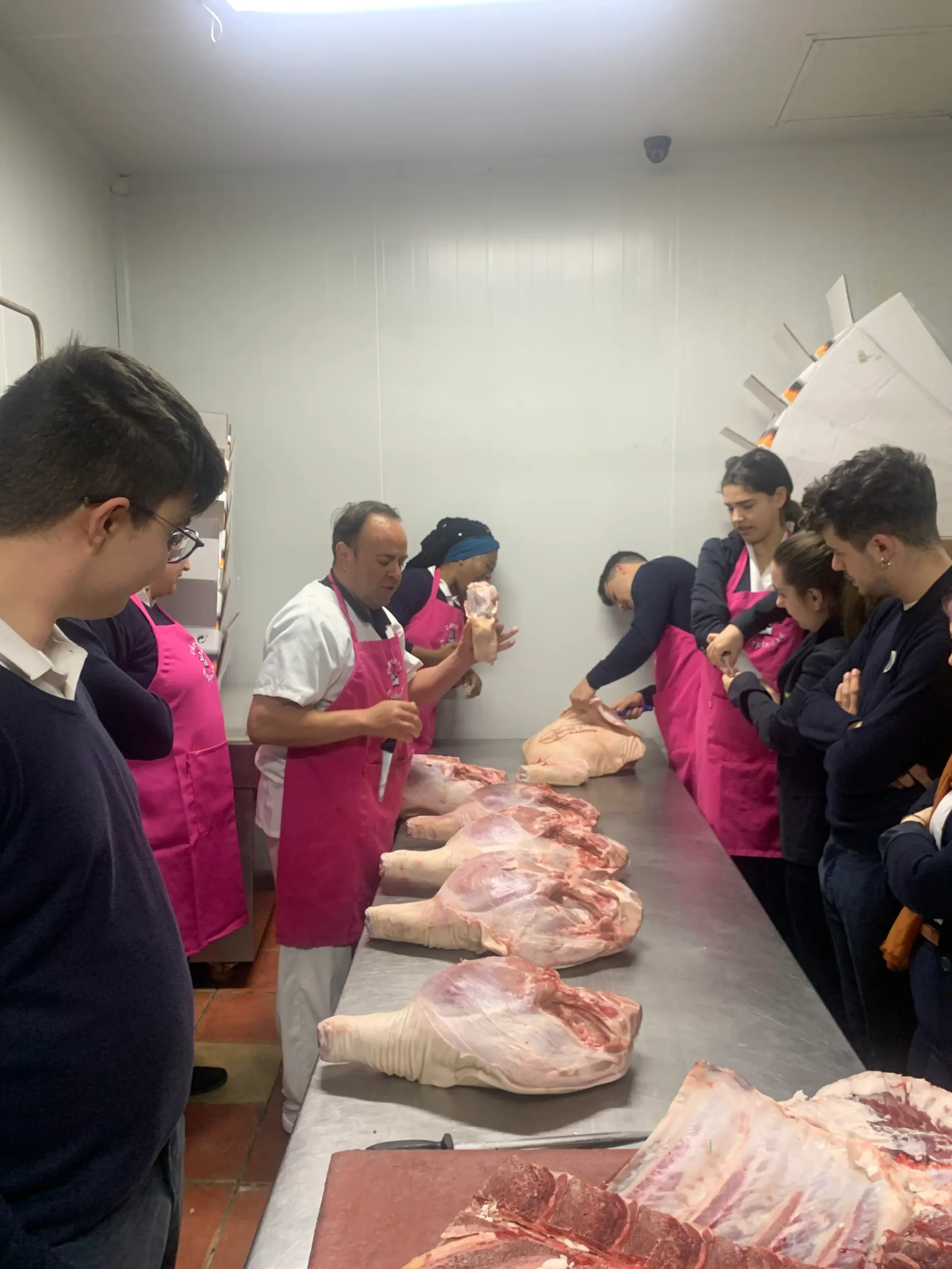 Cárnicas Espinosa cuenta en la propia carnicería con un obrador donde se elaboran platos elaborados listos para consumir, así como con una sala de despiece donde los alumnos han asistido a una demostración del despiece de vacuno y ovino.