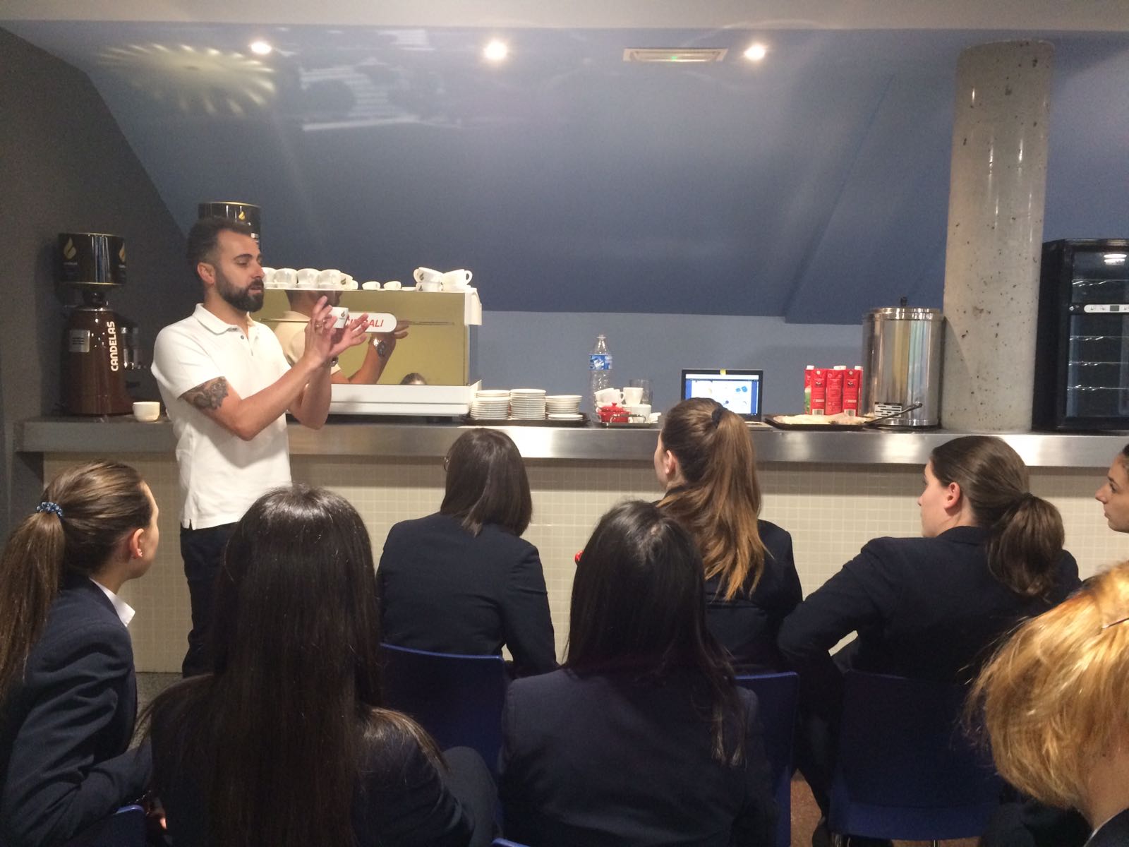 Hoy las alumnas de primero de Grado Medio de Cocina y Gastronomía han recibido el Curso de iniciación del servicio de café, en concreto el origen del café y la elaboración de un expreso perfecto.