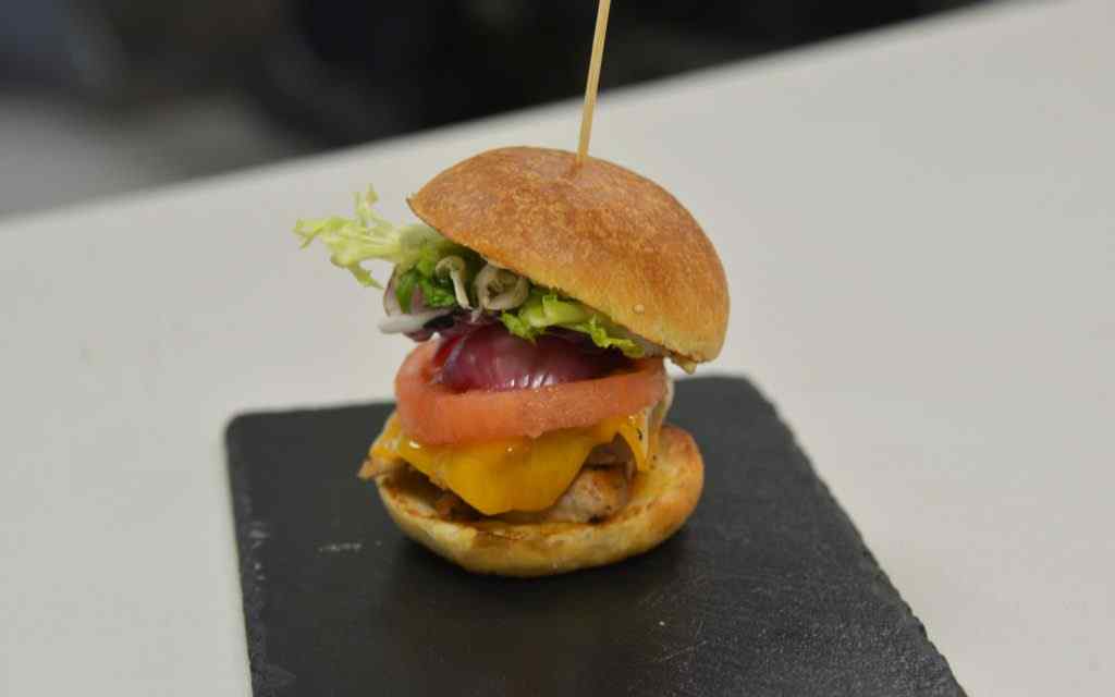 «Hamburguesa de lomo», de Sergio. También ha arriesgado con el pan, haciendo distintas pruebas, finalmente se ha quedado con un pan brioche que fusiona muy bien con el lomo y los vegetales que ha incluido en su hamburguesa, además de la salsa, hecha también por él.