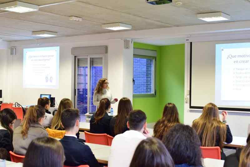 Sandra de Blas, creadora de NaturSnacks, emprendedora de 27 años, ha venido a la Escuela a hablar a nuestros alumnos de Marketing y Publicidad y Gestión de Alojamientos Turísticos sobre cómo emprender desde un Ciclo de Formación Profesional, todo un reto para una mujer tan joven como ella.