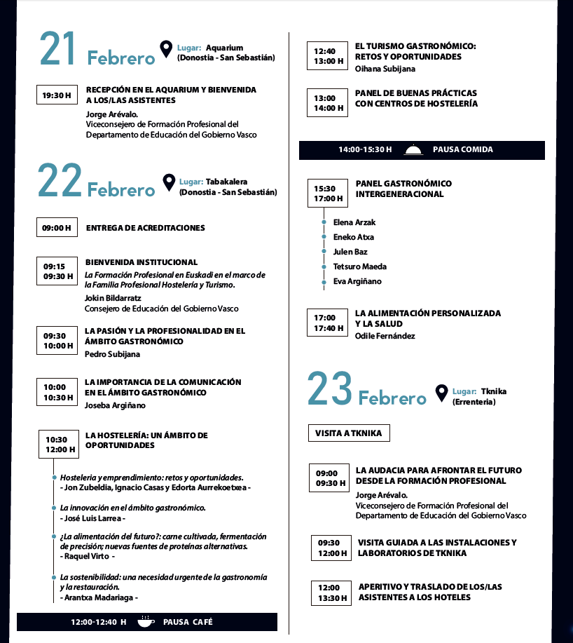 Pondrá el foco en todo momento en la innovación que están impulsando estos centros, se compartirán las buenas prácticas e intercambiarán conocimientos entre escuelas de Hostelería de FP todo el Estado, y se convertirá en punto de encuentro entre distintas generaciones de la gastronomía.