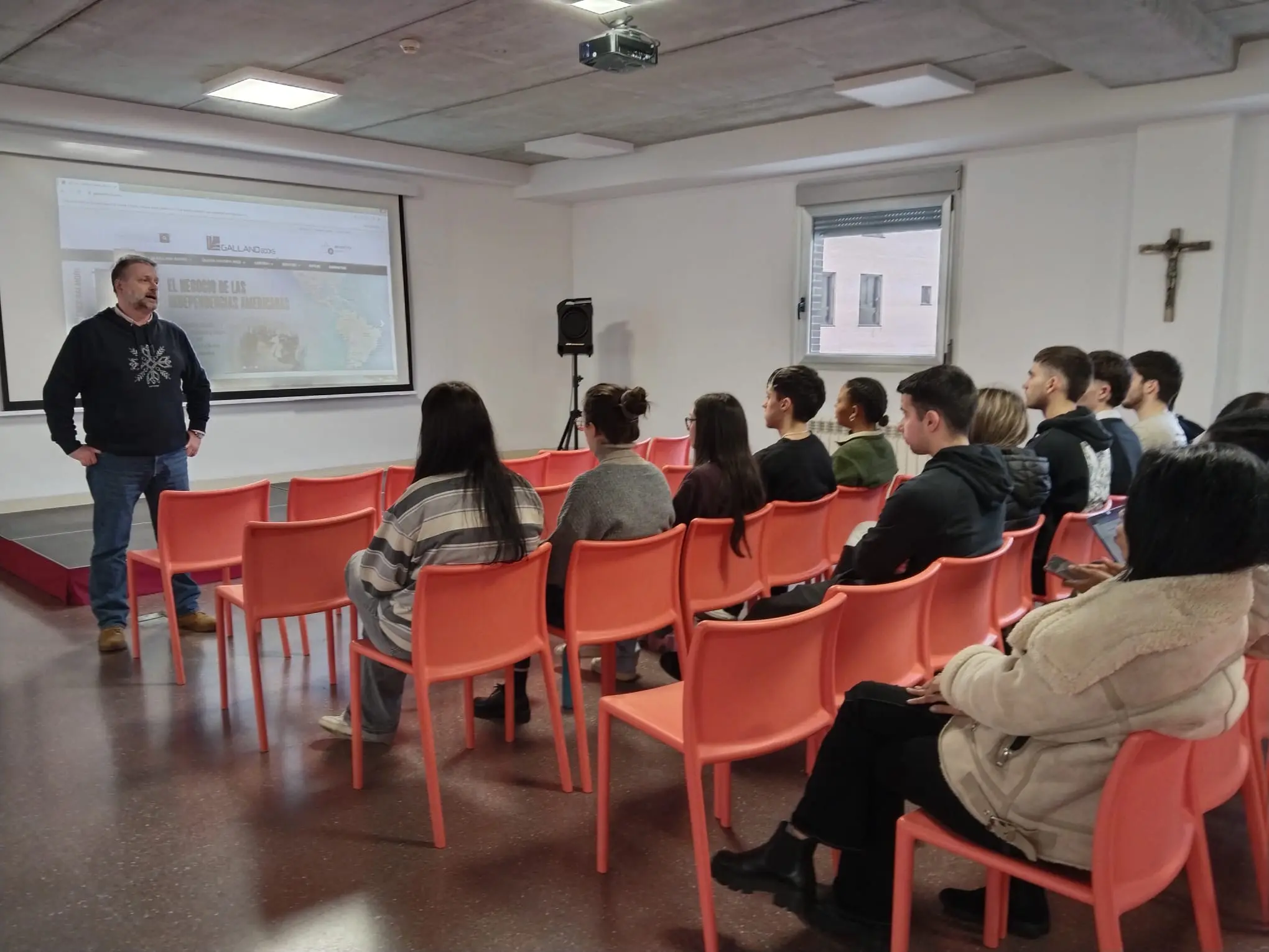 Los alumnos del grado superior de Marketing y Publicidad Bilingüe de la Escuela Alcazarén asisten a una charla sobre emprendimiento en el campo editorial impartida por el fundador y propietario de la editorial vallisoletana Galland Books, especializada en historia militar.