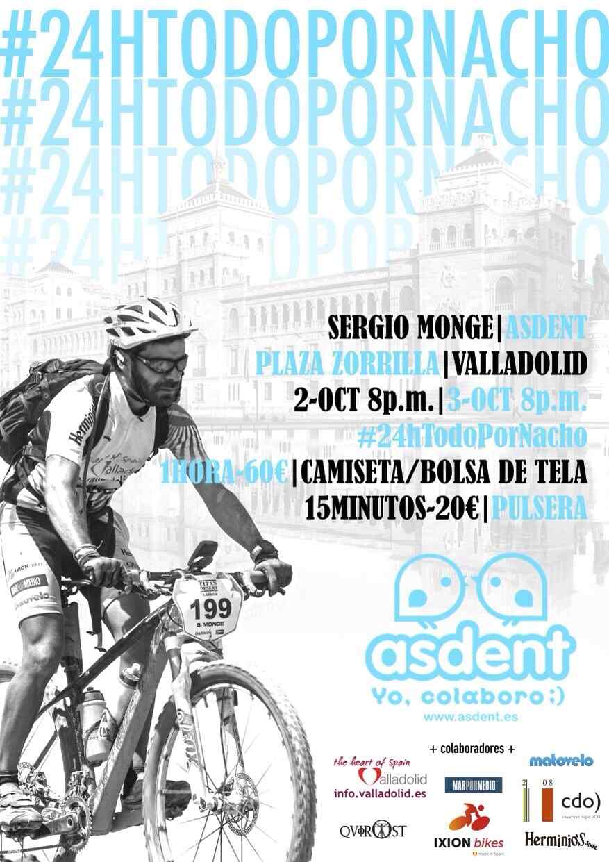 Pedalear sin parar durante 24 horas. Este es el reto al que se enfrentará Sergio Monge los días 2 y 3 de octubre en la plaza Zorrilla. Lo hará con un claro objetivo: recaudar fondos para Nacho, un niño de cuatro años que sufre la enfermedad de Dent y tiene que ser ingresado cada dos meses por las crisis que le provoca esta enfermedad que afecta al riñón y que tan solo ha sido diagnosticada a 14 personas en España. Pedaladas solidarias por Nacho.