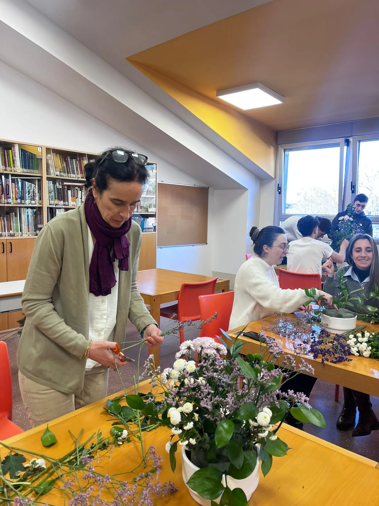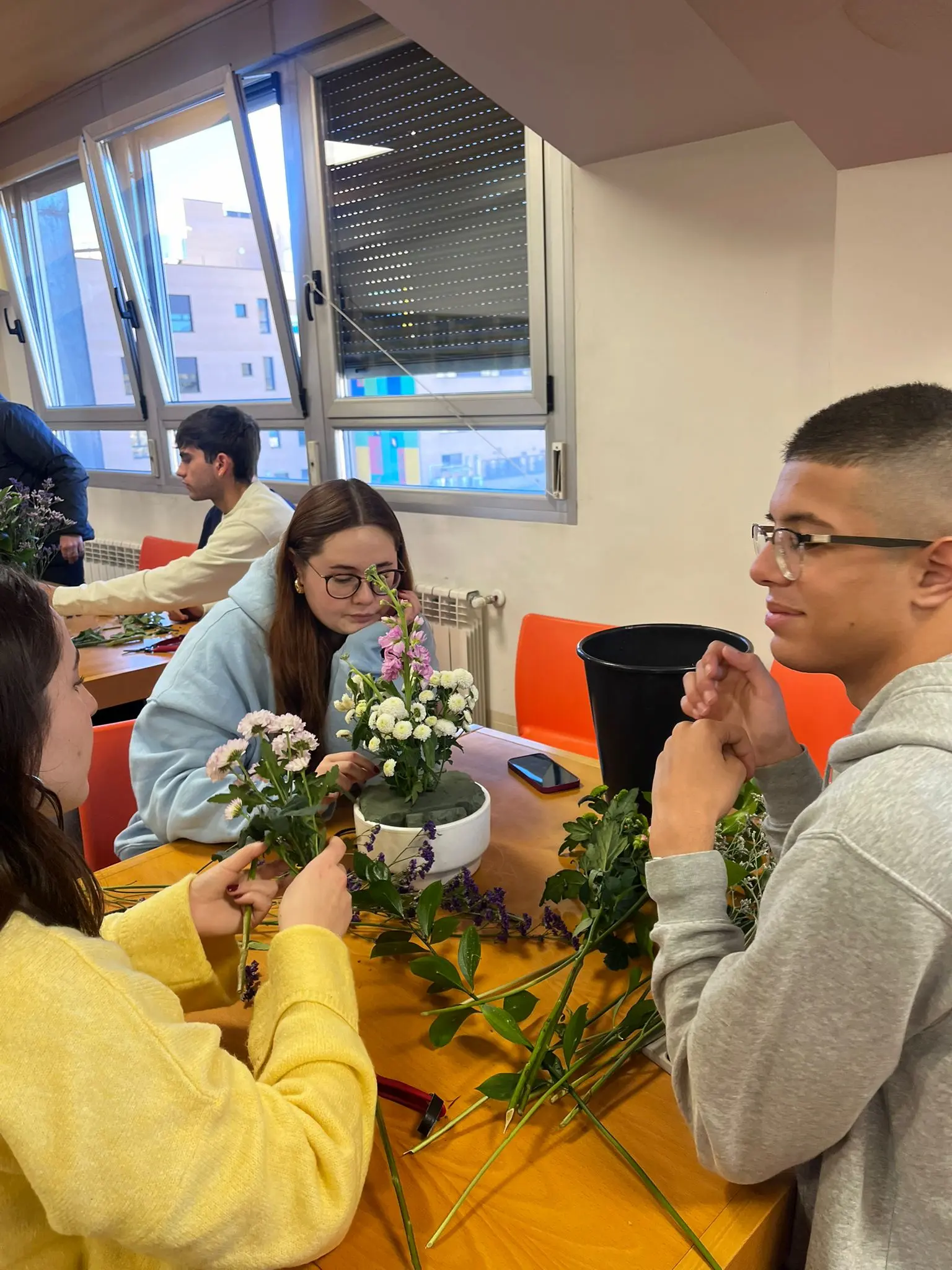 Teresa ha realizado un debate con los alumnos, y después, en grupos, han creado sus propios centros, y a título personal, una decoración para cada uno, con detalles y rasgos personales de cada uno. Sin duda, una flor puede decirnos mucho del momento, la persona y el estado de ánimo.
