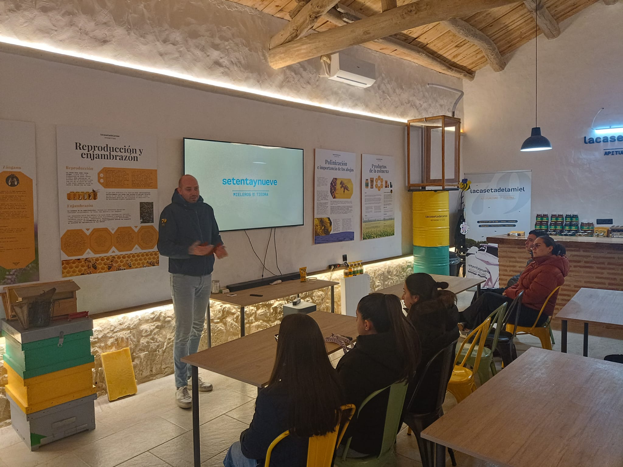 La primera parada fue Miel 79, empresa puntera en el sector del apiturismo. En sus instalaciones los alumnos pudieron ver el proceso completo de creación de la miel, los productos que elaboran artesanalmente y comercializan, panales, métodos de extracción de la miel…