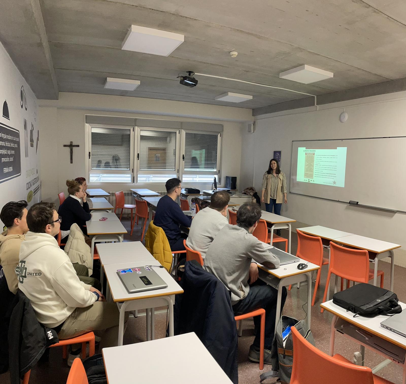 Los alumnos de los ciclos del grado en cocina y gastronomía y la fp de dirección de cocina disfrutaron de una ponencia llena de datos sorprendentes y curiosidades del mundo de la celiaquía.