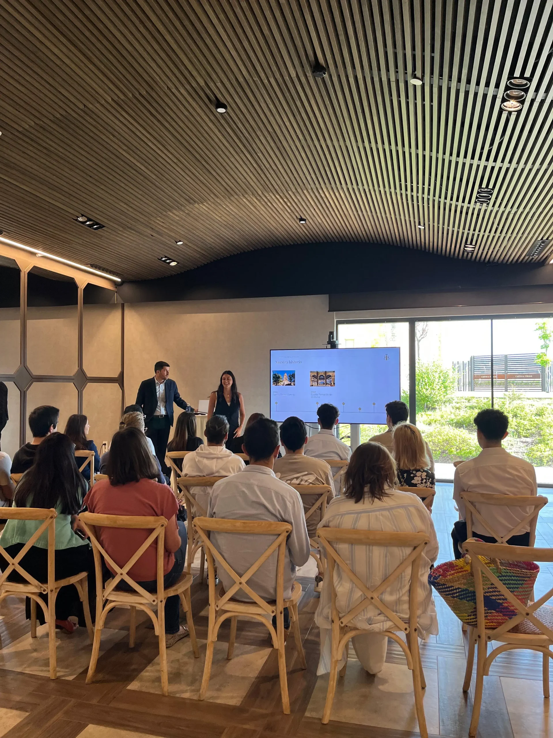 En Castilla Termal Valbuena, el grupo pudo conocer en profundidad un proyecto que va mucho más allá del alojamiento. Un hotel que combina patrimonio, sostenibilidad, innovación y bienestar, y donde cada detalle está pensado para ofrecer una experiencia única. Los alumnos descubrieron iniciativas como el huerto ecológico, el gallinero, el vino propio, el spa, la filosofía slow life y el enfoque kilómetro 0. Además, pudieron sentir el cuidado con el que se trabaja tanto con el cliente como con el equipo humano. Agradecemos muy especialmente a Ángela Velasco, del departamento de Recursos Humanos, y a Diego Sanz, Director del Hotel, por su cercanía, el cariño con el que siempre nos reciben y el tiempo que nos dedicaron en esta nueva visita.