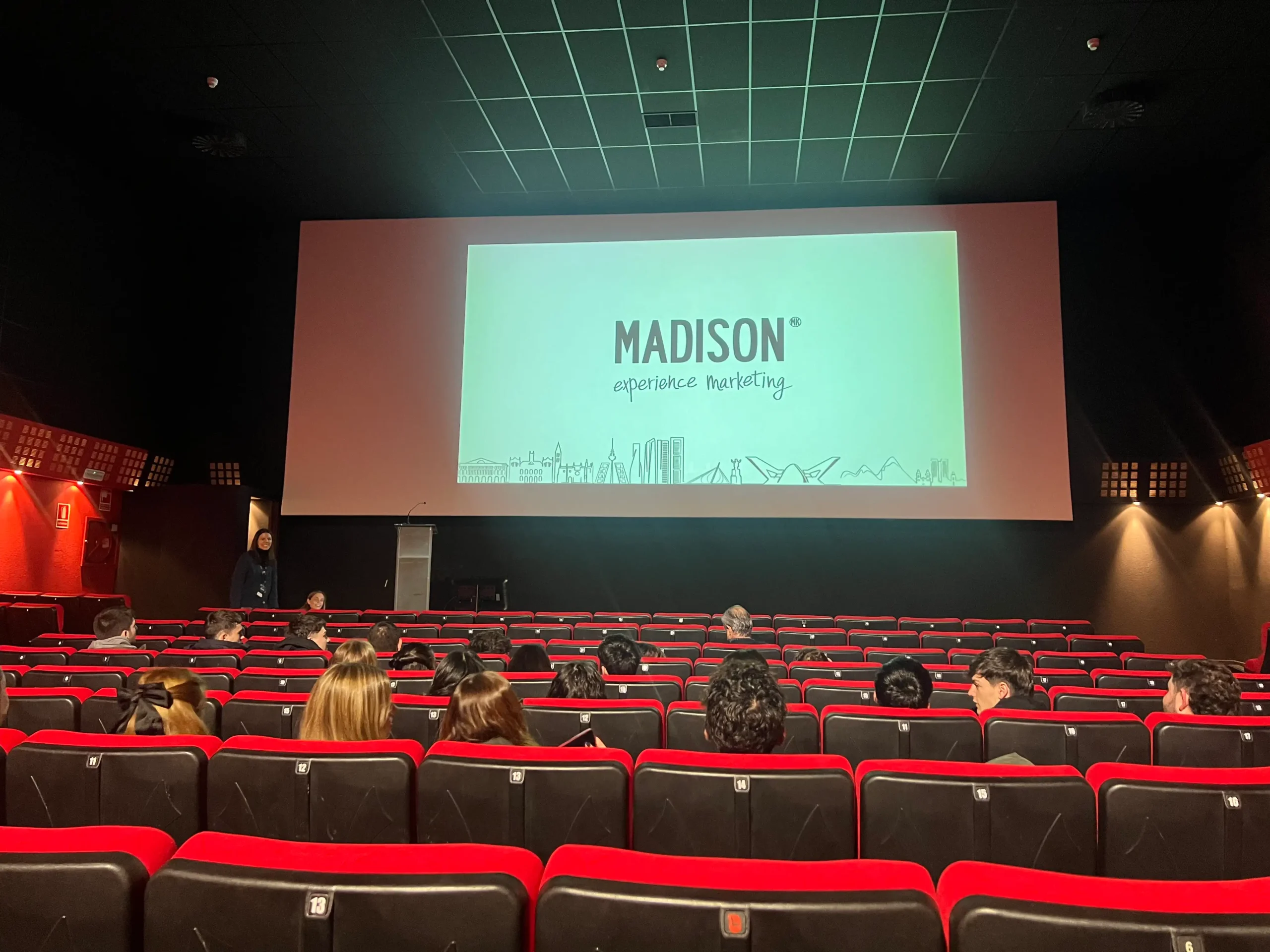 Los alumnos de 1º de Gestión de Alojamientos Turísticos y los de 1º y 2º de Marketing y Publicidad han visitado las instalaciones de Madison. Tras un recorrido por los espacios del edificio, han podido recibir una sesión en una sala de cine de mano de expertos de los diferentes departamentos de la empresa (departamento de marketing digital, enoturismo, diseño, etc.).